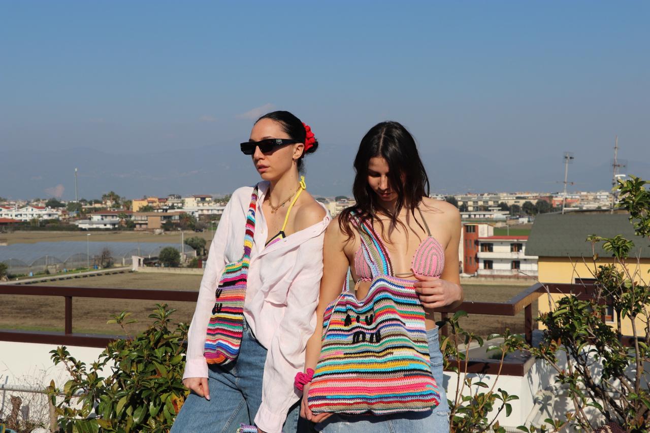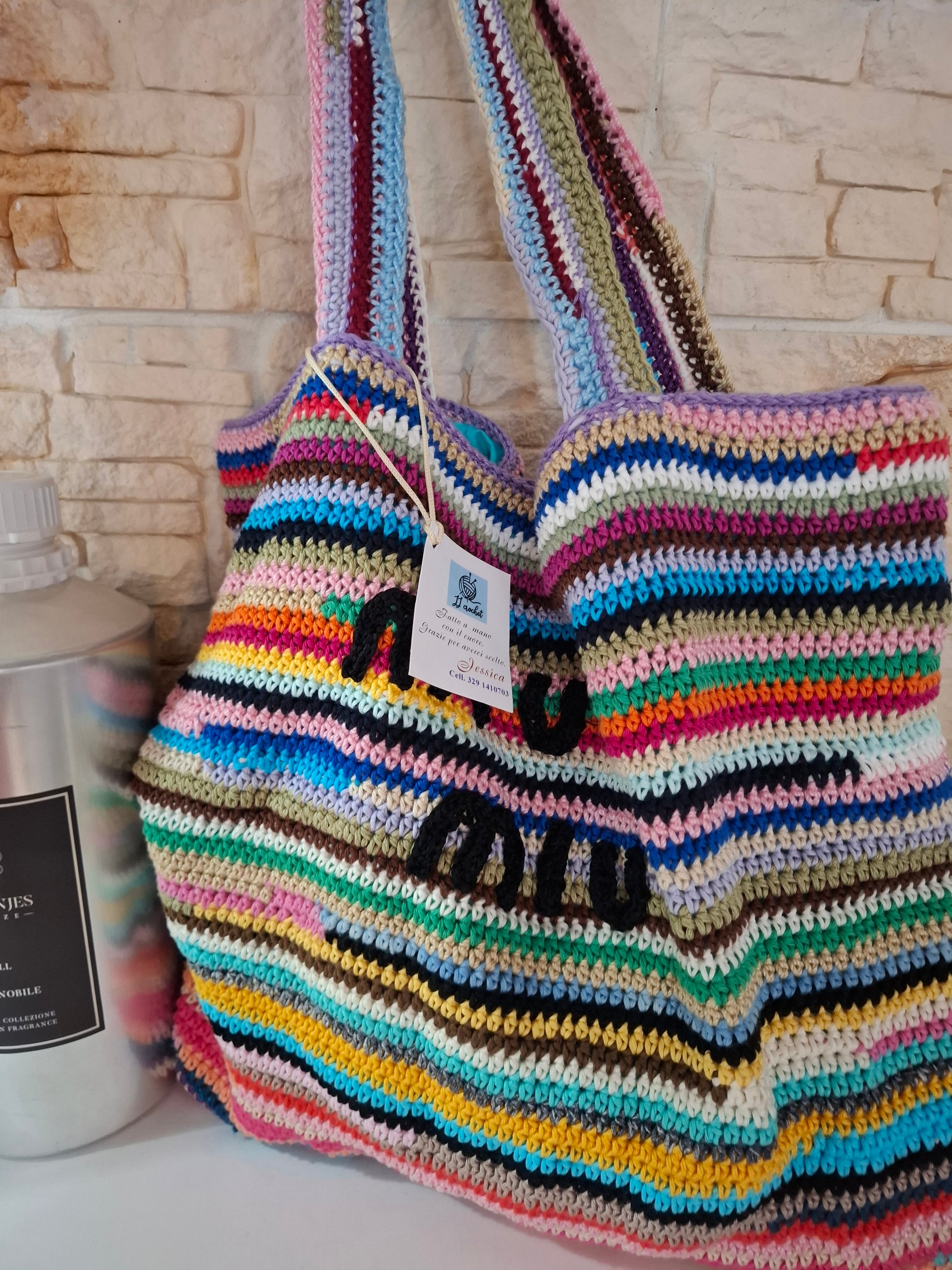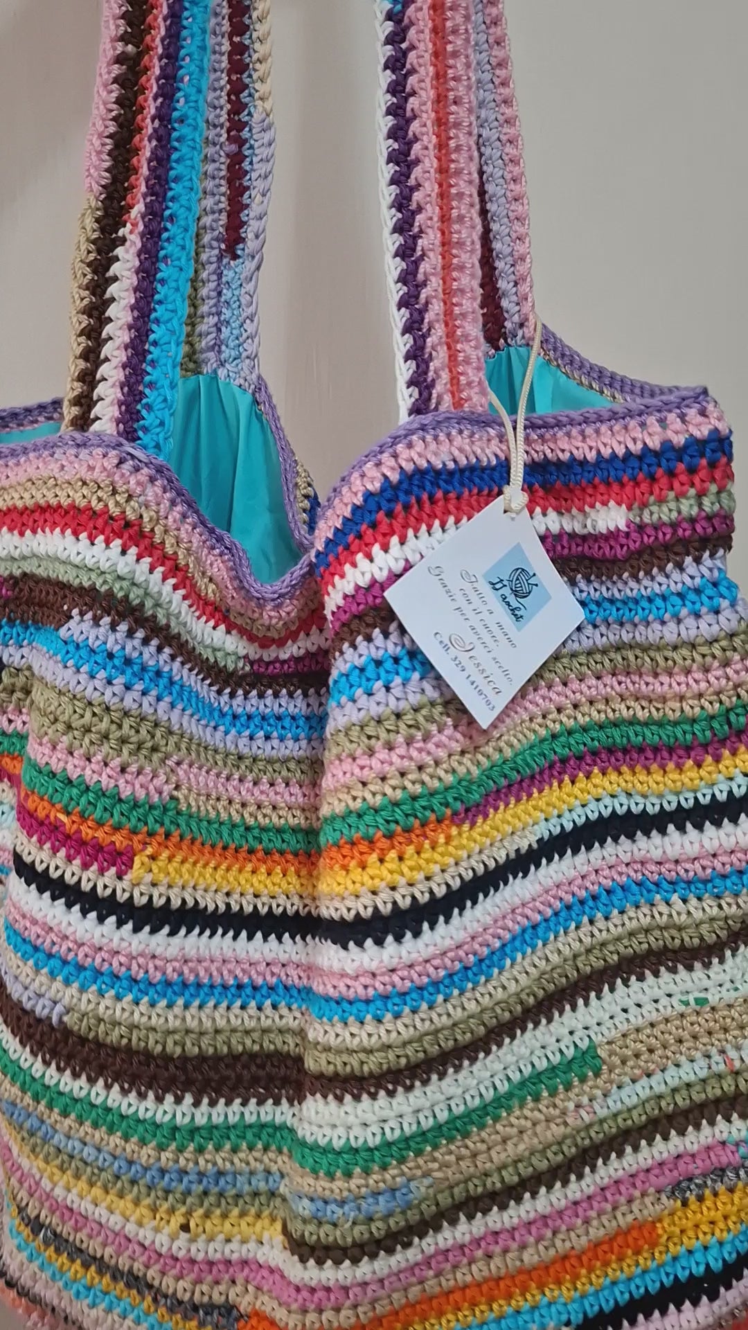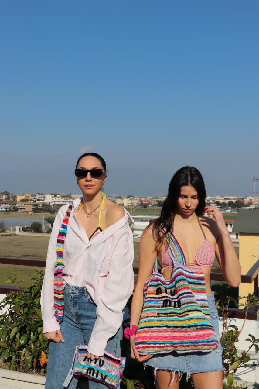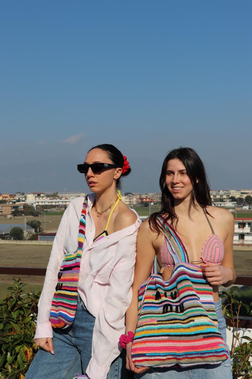 Questa splendida borsa a righe colorate, realizzata interamente a mano, unisce il fascino del design italiano con l’originalità dei colori vivaci e l’eleganza senza tempo.